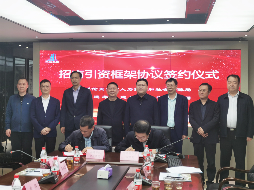 426日下午,内蒙古自治区呼伦贝尔市黄锋副市长带队,呼伦贝尔市政府办公室李永志副主任、人社局李国强局长、人社局张健副局长、就业服务中心张磊主任、大数据中心张如明主任等一行莅临我司调研对接招商引资工作,呼伦贝尔市人社局与福建华航建设集团成功签订招商引资框架协议。呼伦贝尔金辉房地产有限公司蔡节键董事长和福建华航建设集团阮伏球总经理、吴秀敏副总经理、林辉雄副总经理、张克森董事长助理等参加座谈交流,李国强局长和吴秀敏副总经理分别代表呼伦贝尔市人社局和福建华航建设集团签订招商引资框架协议。